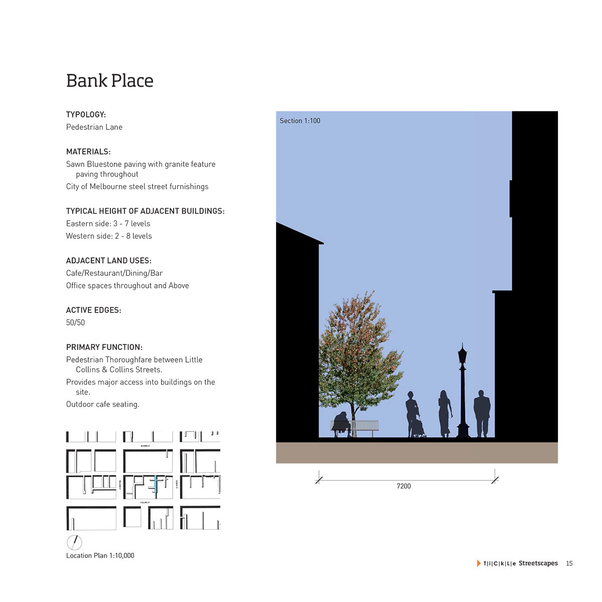 At the heart of the city of Melbourne numerous street types exists. Narrow laneways acting as service conduits to feed the city with produce and remove its garbage, grand tree lined streets and everything in between. This booklet aims to capture the core street types of Melbourne and collate them as an inventory in order to better understand the spatial ramifications of individual street design. The inventory is an organism that grows as additional research is conducted and the knowledge is collated in a formal manner within these pages.