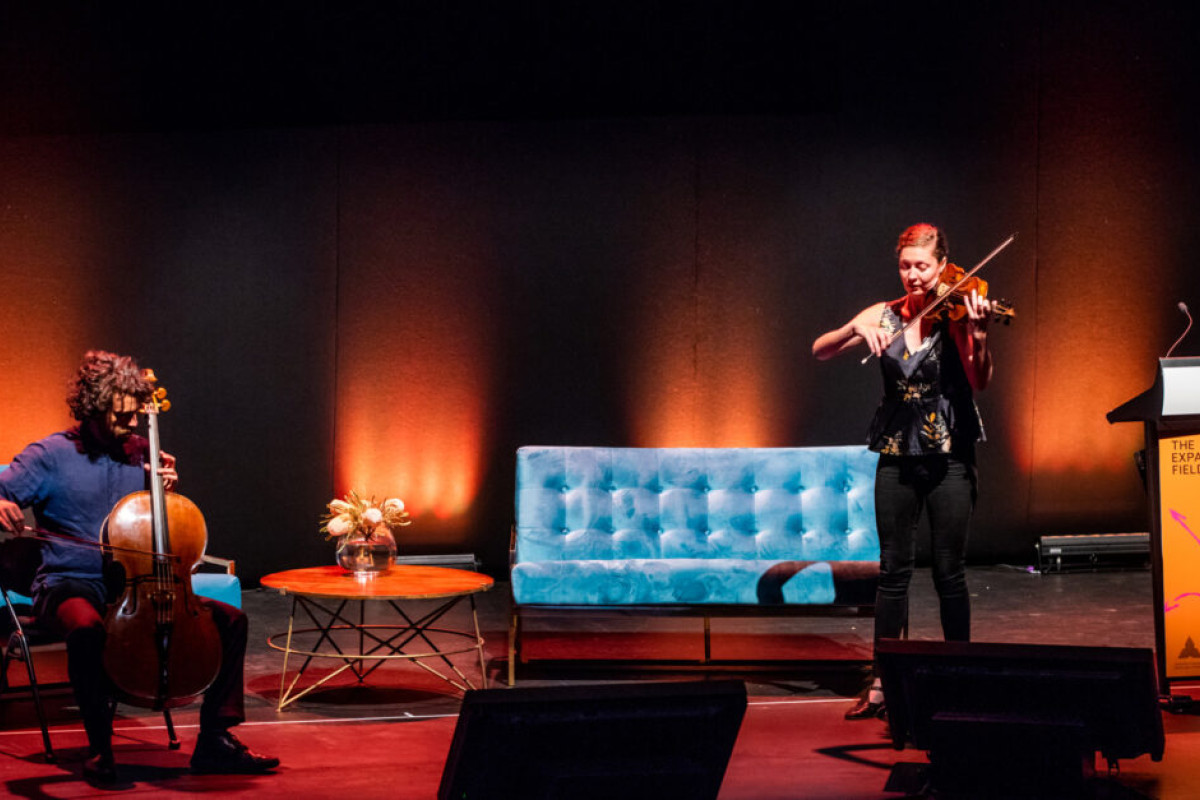 Photo: Simone Slattery and Anthony Albrecht performing Where Song Began at the 2018 AILA Festival of Landscape Architecture. Photo Credit: AILA