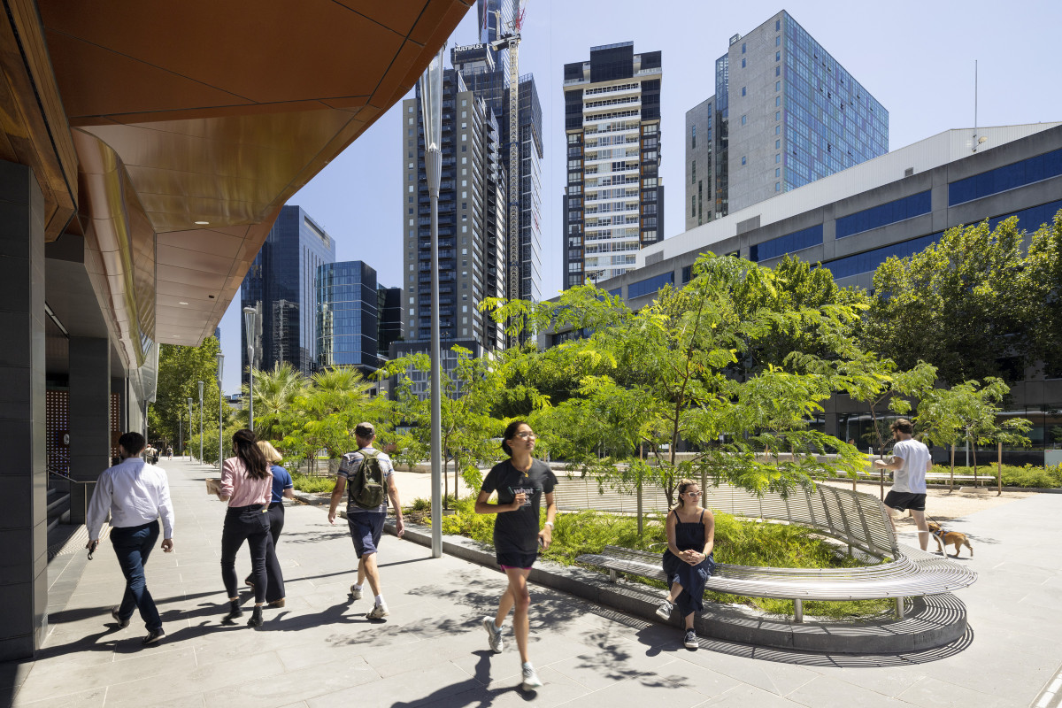 The culmination of a long-standing vision to reclaim 22,000m2 of arterial road for accessible public space in one of the most dense, highly contested parts of Melbourne. This outstanding project has far exceeded its primary ambition and the City of Melbourne and its collaborators are commended by the Jury for realising this transformation… drawing on pre-colonial ecologies, the design makes these tangible in spaces that offer respite.