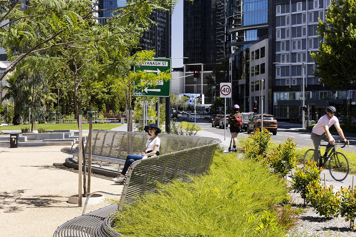 City of Melbourne’s vision for Southbank Boulevard was founded in three key themes, resulting in improved biodiversity and an ecologically connected urban landscape development. The three themes explore pre-European settlement, the boulevard as a biodiversity corridor, and connecting people to nature. The site has been transformed - once heavily focused on auto transport - into a scenic connection for visitors to the city via a green corridor. A new connective thread was achieved for people to experience the City and the Yarra River.