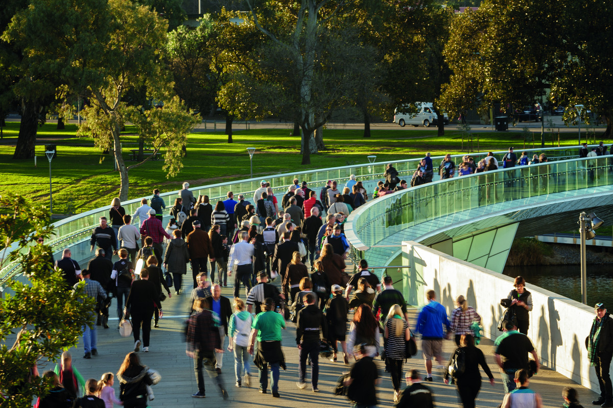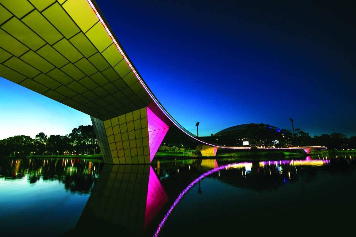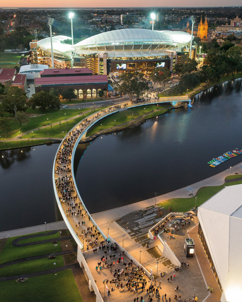 The Riverbank Pedestrian Bridge provides a vital connection between the city’s highly visited Adelaide Festival Centre, Adelaide Railway Station and the recently redeveloped Adelaide Oval. The 255-metre-long bridge was constructed by McConnell Dowell and arcs over the River Torrens, connecting two key destination points on the north and south banks. The upgraded connection points provide activated destinations at each end of the bridge, with interactive elements including lighting and water features.