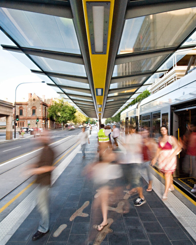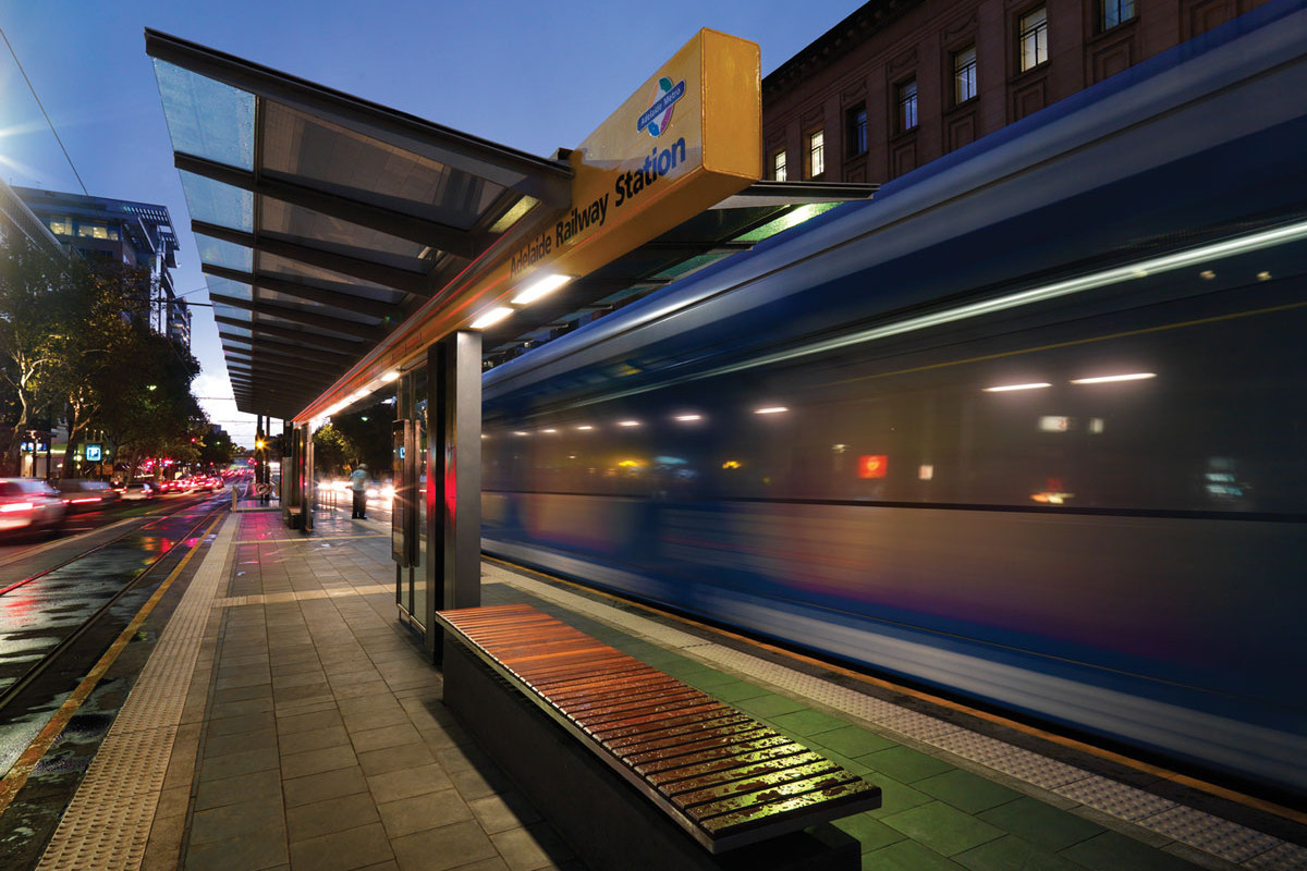 The long vistas down North Terrace and King William Street are an important part of the character and integrity of Adelaide’s two ceremonial streets. The shelters are therefore as slender as possible, reinforcing the linearity of the street and presenting the minimum number of vertical obstacles to the view.