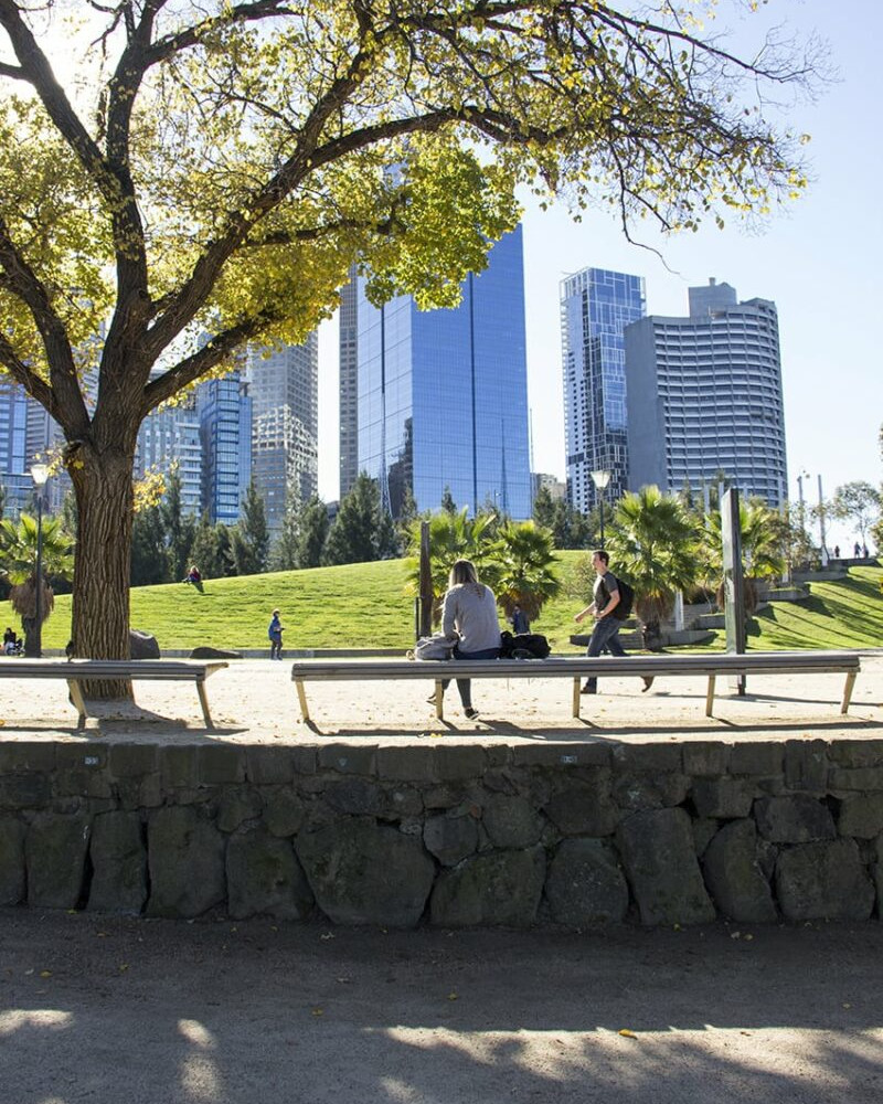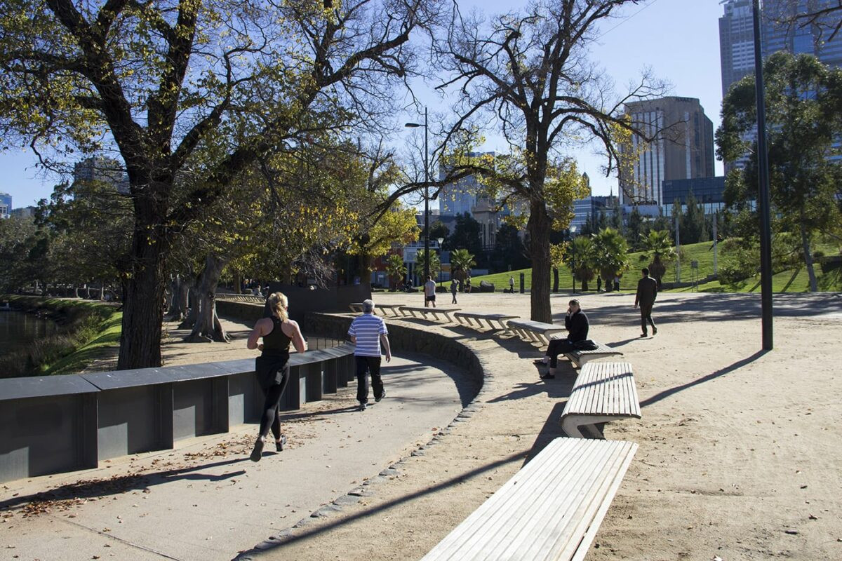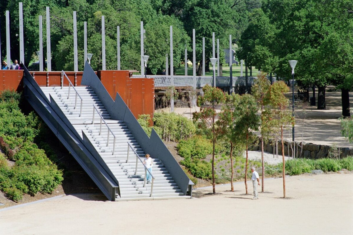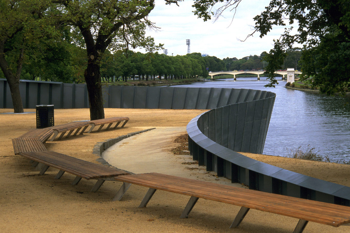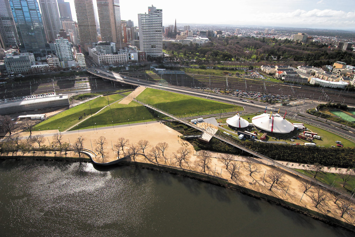 Birrarung Marr is the first new park near Melbourne's CBD in over a century. It is a new type of space beyond the traditional notion of city parks. Not a retreat, instead an urban place designed to embrace society and civic life and to celebrate public activity as a source of interest.