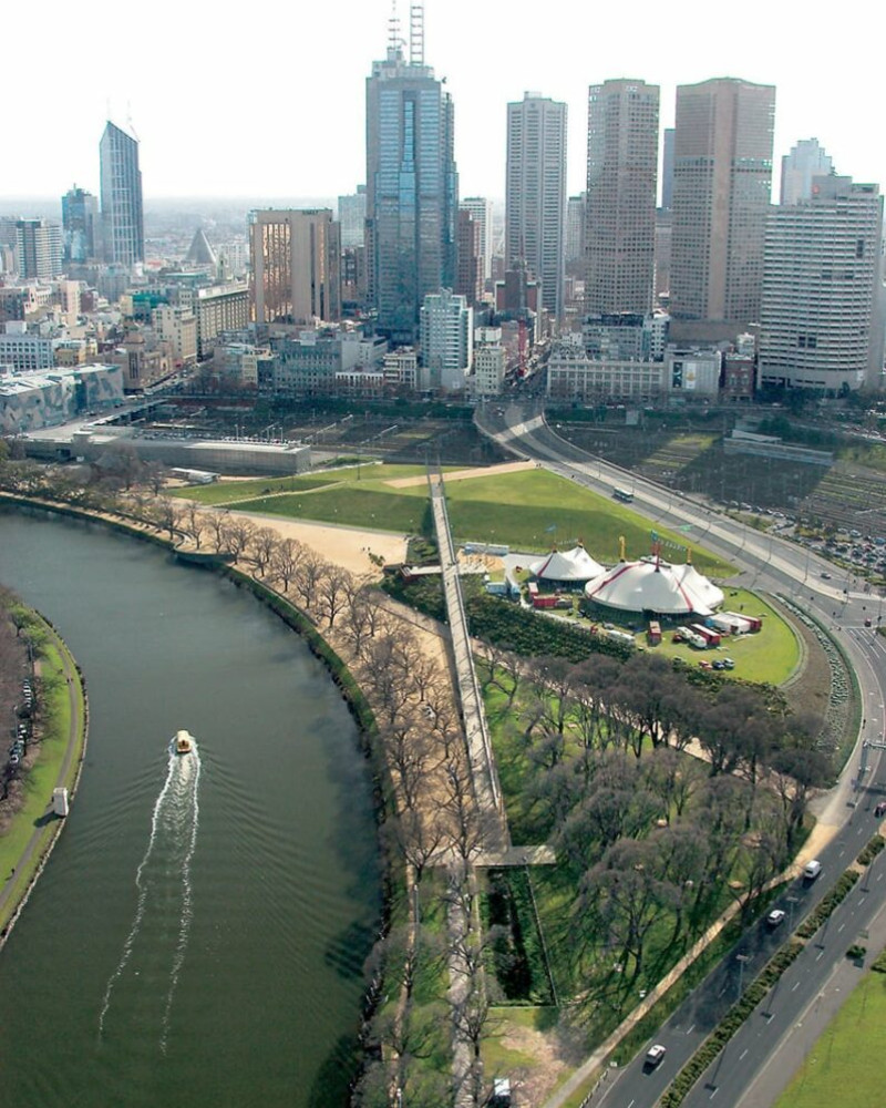 Located over former rail yards, and situated alongside The Yarra River the $15m park design provides a series of distinct spaces where many activities can occur, where large scale urban events, organised activities or informal uses are considered an intrinsic part of the park.