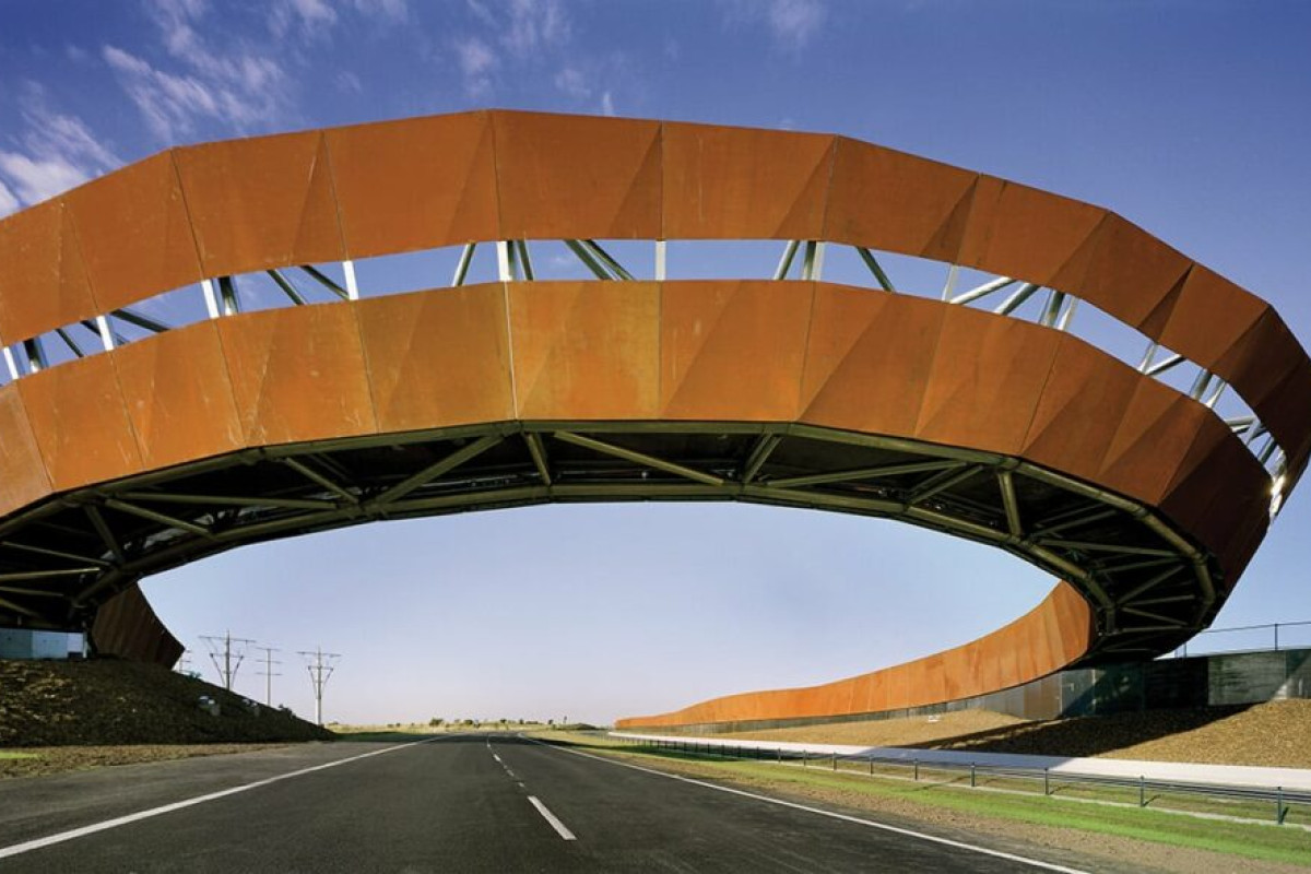 Taylor Cullity Lethlean, Tonkin Zulaikha Greer and Robert Owen won this competition in 2003. The winning design, comprising walls, bridges and landscapes, was informed by a poetic reading of the site and a freeway environment largely experienced at speed. In particular the design explores how otherwise static objects begin to exhibit dynamism or are activated by the traveling motorist.