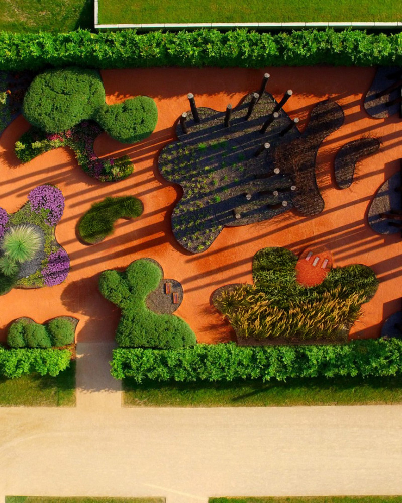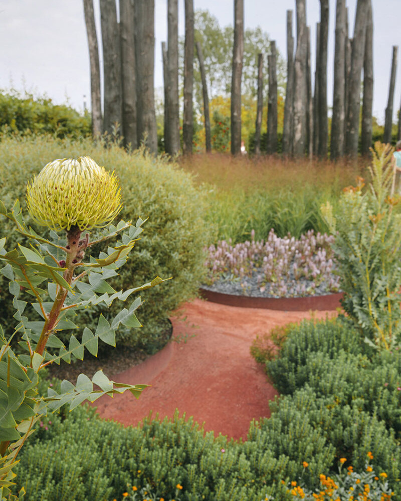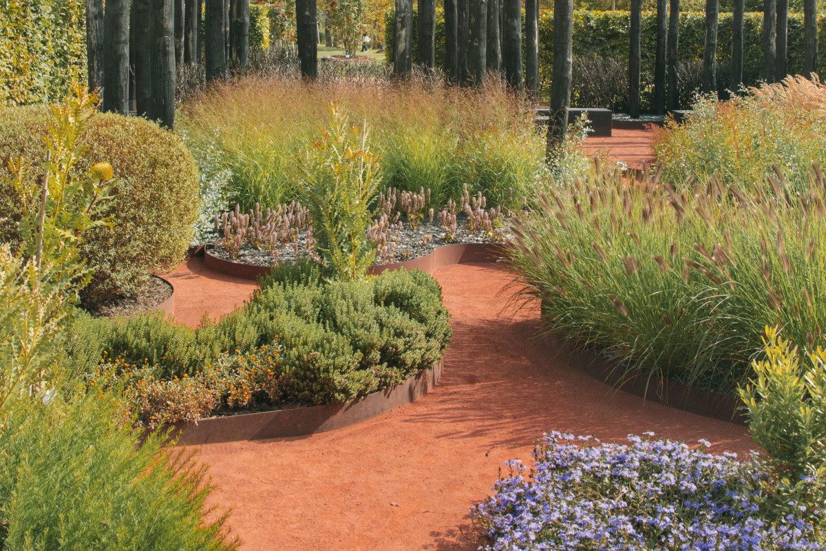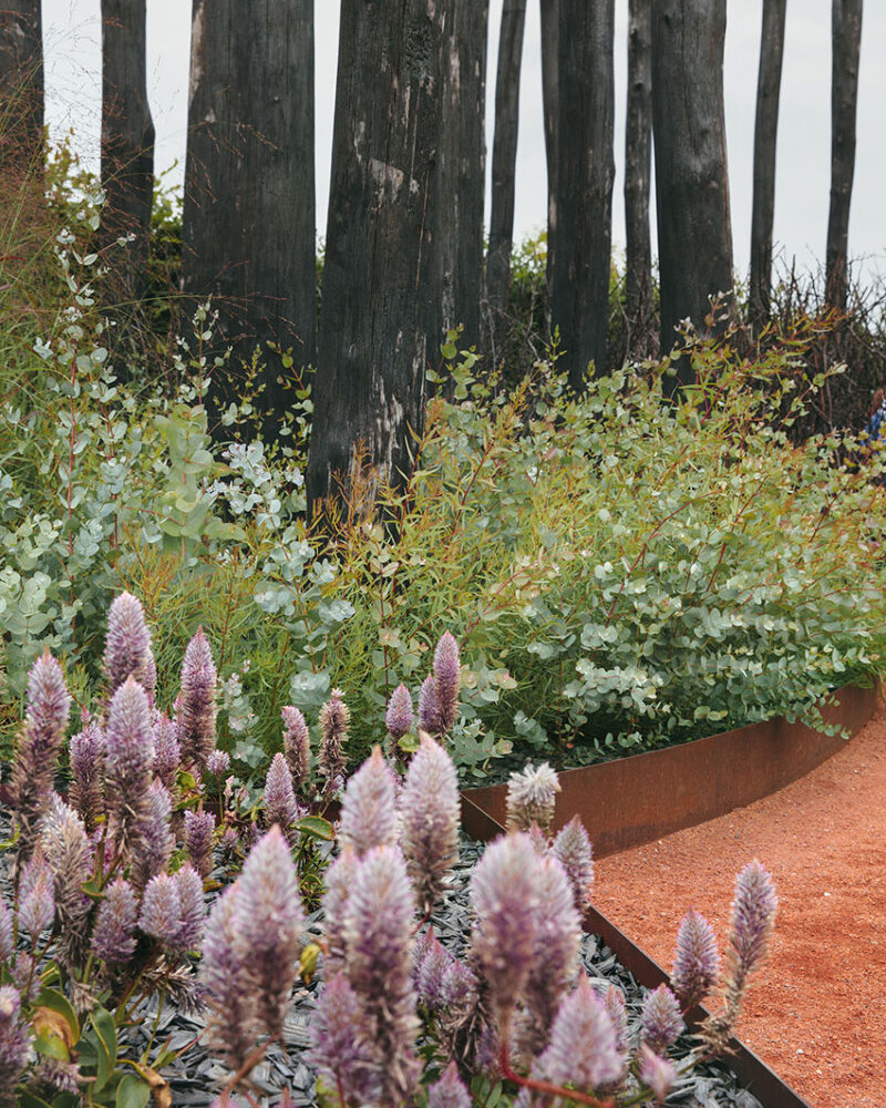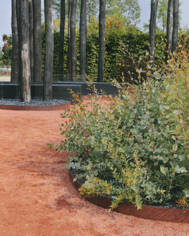 The Internationale Gartenausstellung 2017 (International Garden Exhibition) was a horticultural exhibition that was held in the German capital Berlin in 2017. TCL was selected as one of nine leading international landscape designers to be given a small allotment (380-square-metres) to create a permanent contemporary garden that showcased the cultural landscape of their home country.Titled Cultivated by Fire, TCL's garden explores the Aboriginal land management practice of ‘fire-stick farming.’ This sophisticated practice of selective, low-intensity burning serves many purposes for Aboriginal people, including reducing the risk of larger and more unpredictable bushfires, creating open country ideal for hunting grazing marsupials, increasing fertile new growth that provides an abundance of edible plants for both wildlife and humans, and flushing out animals for hunting during the burning.The Cultivated by Fire garden distils and abstracts fire-stick farming to create a mosaic garden composed of elements reminiscent of both the burnt and rejuvenated Australian landscape. These elements include actual fire, charred poles and clipped branches, Eucalyptus and Acacia seedlings, floriferous garden beds of Australian native plants and a walkable orange ground plane of crushed red brick that is reminiscent of the fiery sands of the central Australian desert.