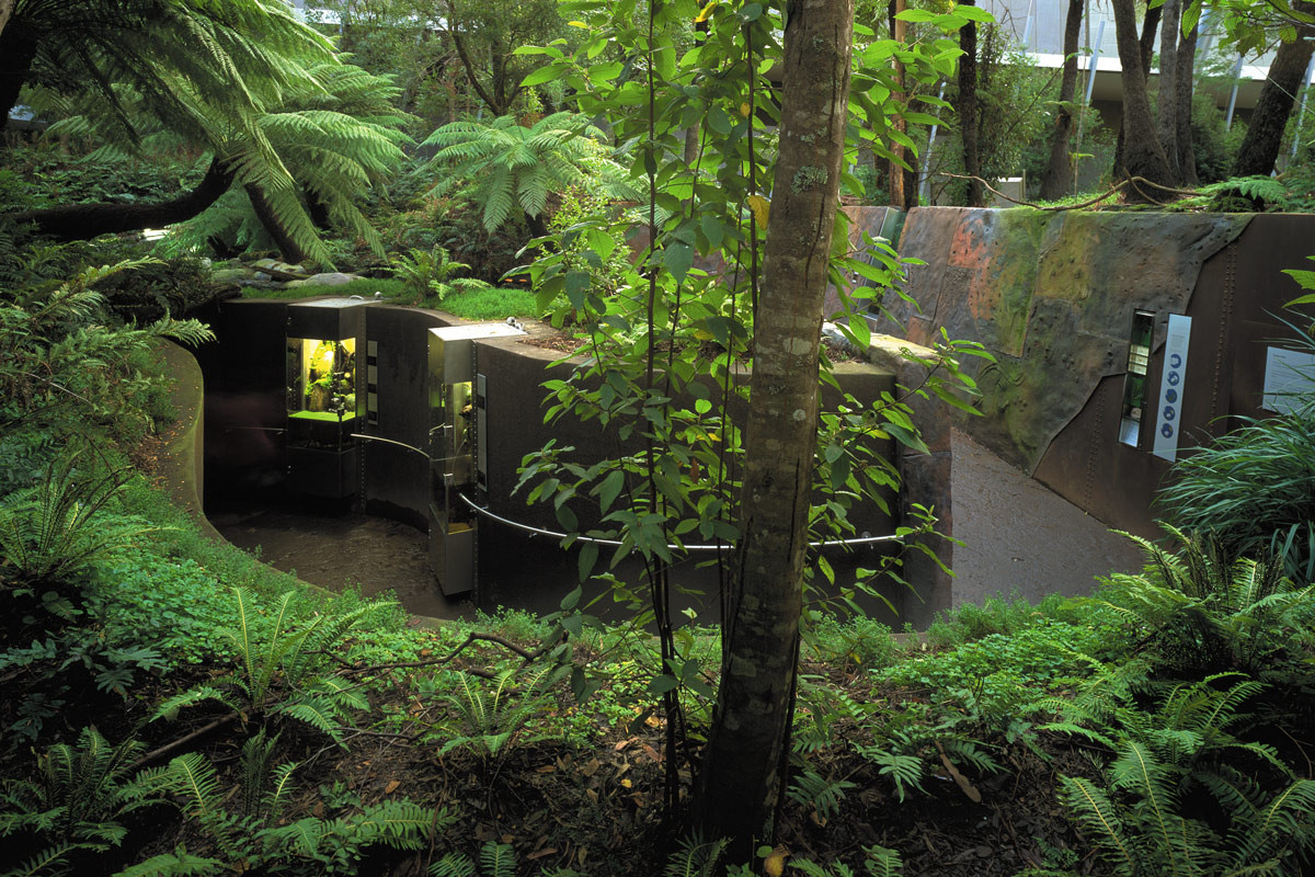 TCL were the lead designers engaged by Melbourne Museum to create an awe-inspiring place that is a living museum in itself. Its mountainous terrain is cloaked with massive Eucalyptus regnans, some up to 100 metres tall and 300 years old. In its valleys, a temperate rainforest, a remnant of Gondwana, is found. Both live and die with fire, the Eucalyptus in its presence, the rainforest in its absence.