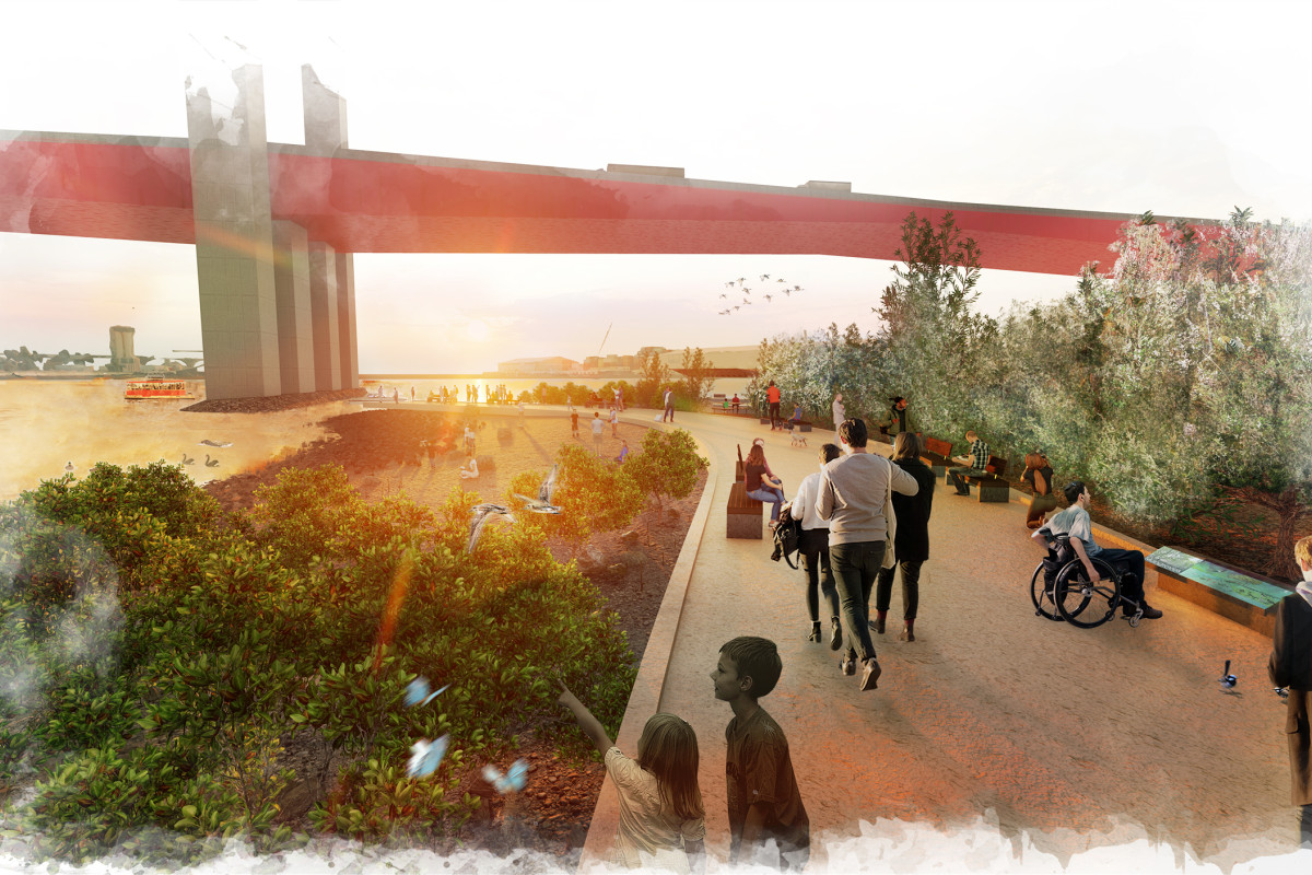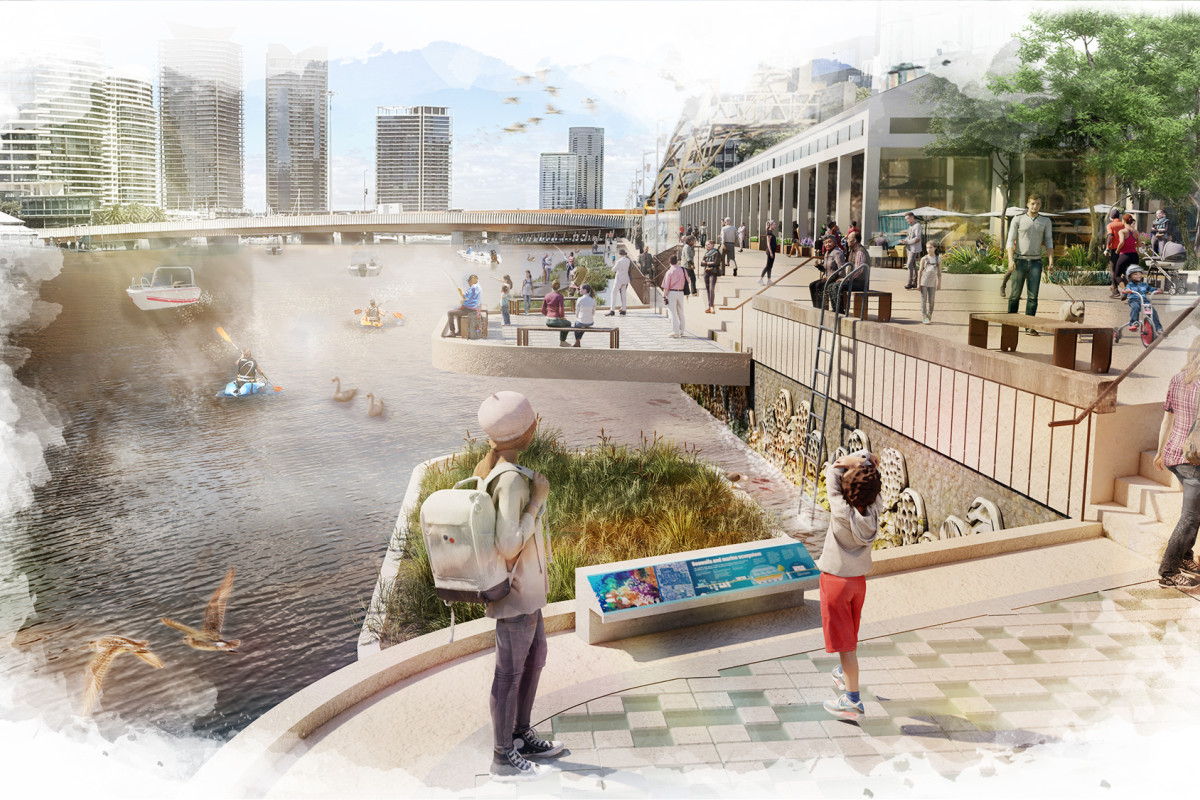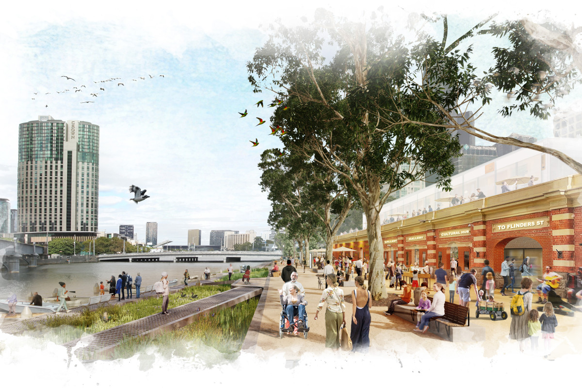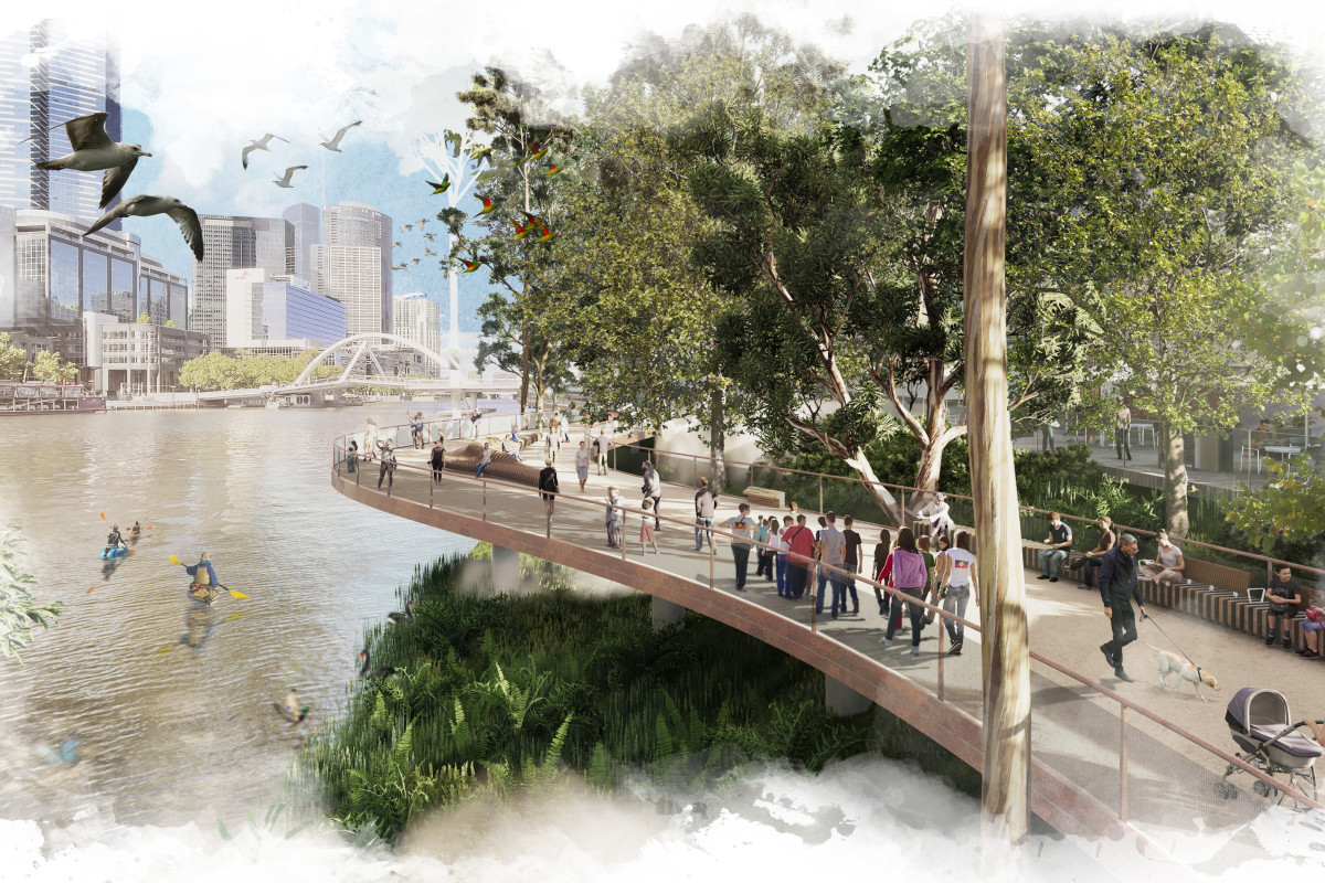 The project proposes a contemporary waterfront for the Birrarung with a vision that weaves together multiple stories, cultures, ecologies, connections and places into a cohesive project. It represents a transformative shift in the way people will relate to the city and its river. It acknowledges how – for millennia – Wurundjeri Woi-wurrung people, along with their neighbouring Kulin nations, have had a reciprocal relationship with this Country.