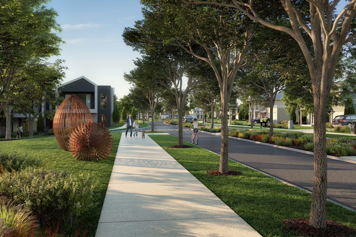 A hierarchy of open spaces underpins the key design movements for the Kinley development; one that is intended to be a walkable, accessible and integrated community.