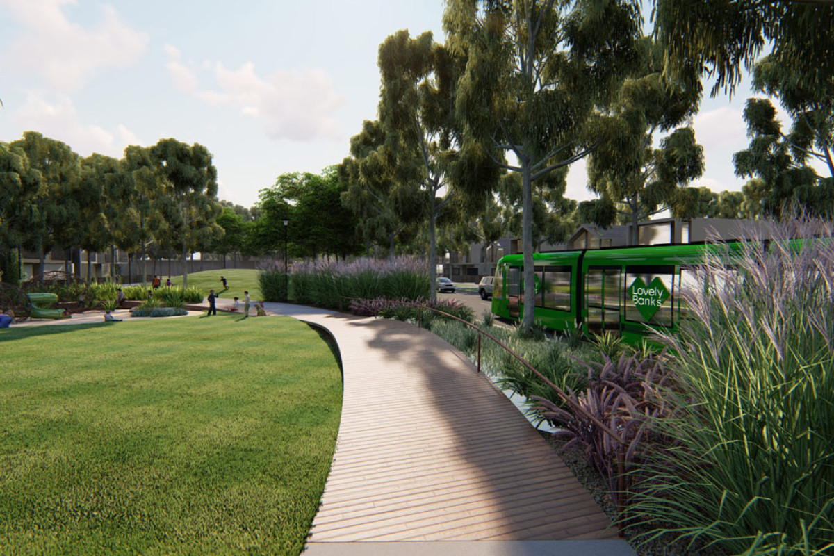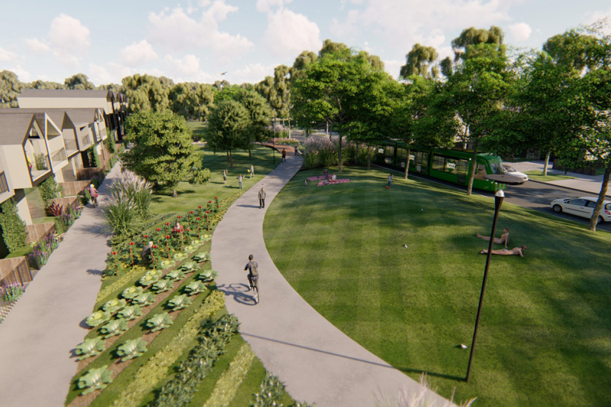 Designed in collaboration with town planners Roberts Day and landscape architects SBLA, our plan envisages walkable communities – each with their own unique landscape character – that are connected through green, braided links. These pedestrian-oriented links comprise connecting footpaths and bike lanes across the entire development, as well as a trackless tram for faster travel.