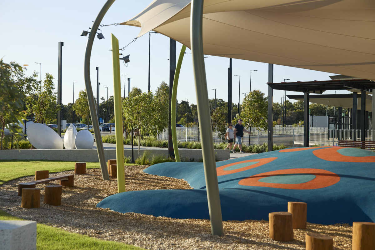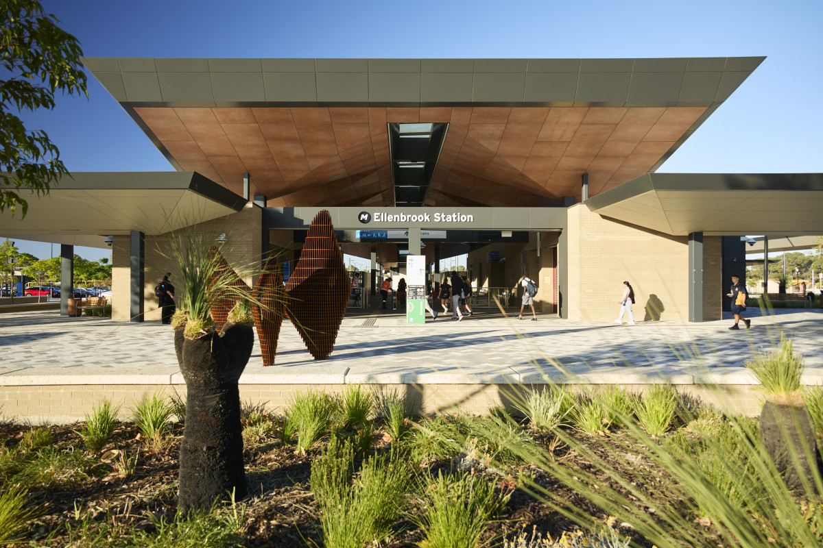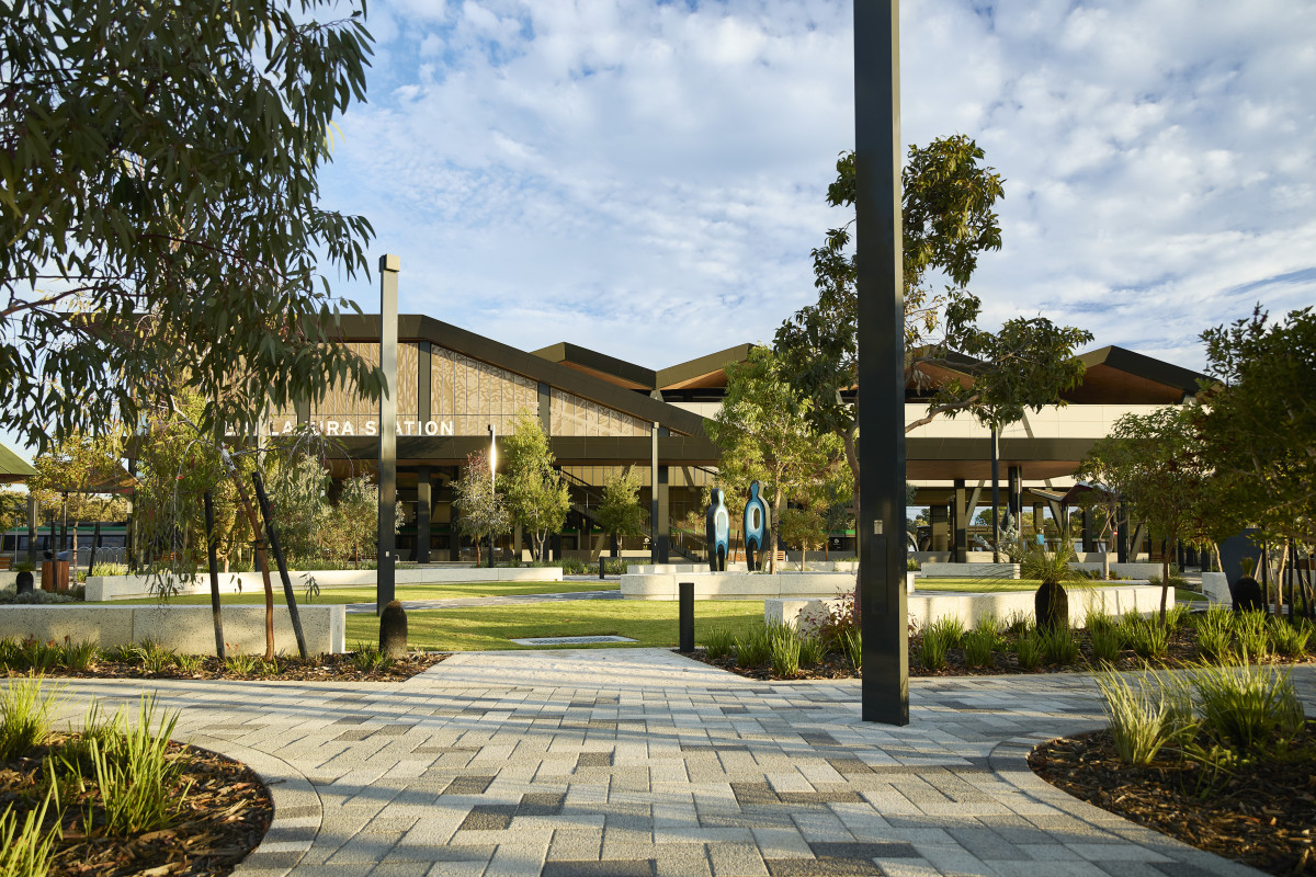 The urban design creates welcoming places and amenity within what could be a hostile surrounding context. The station precincts are designed for inclusivity, connecting pedestrians with trains, buses, bicycles and cars. The precinct design celebrates the Western Australian landscape, utilising local planting and materials to create comfortable civic spaces that are enjoyable, vibrant and safe.