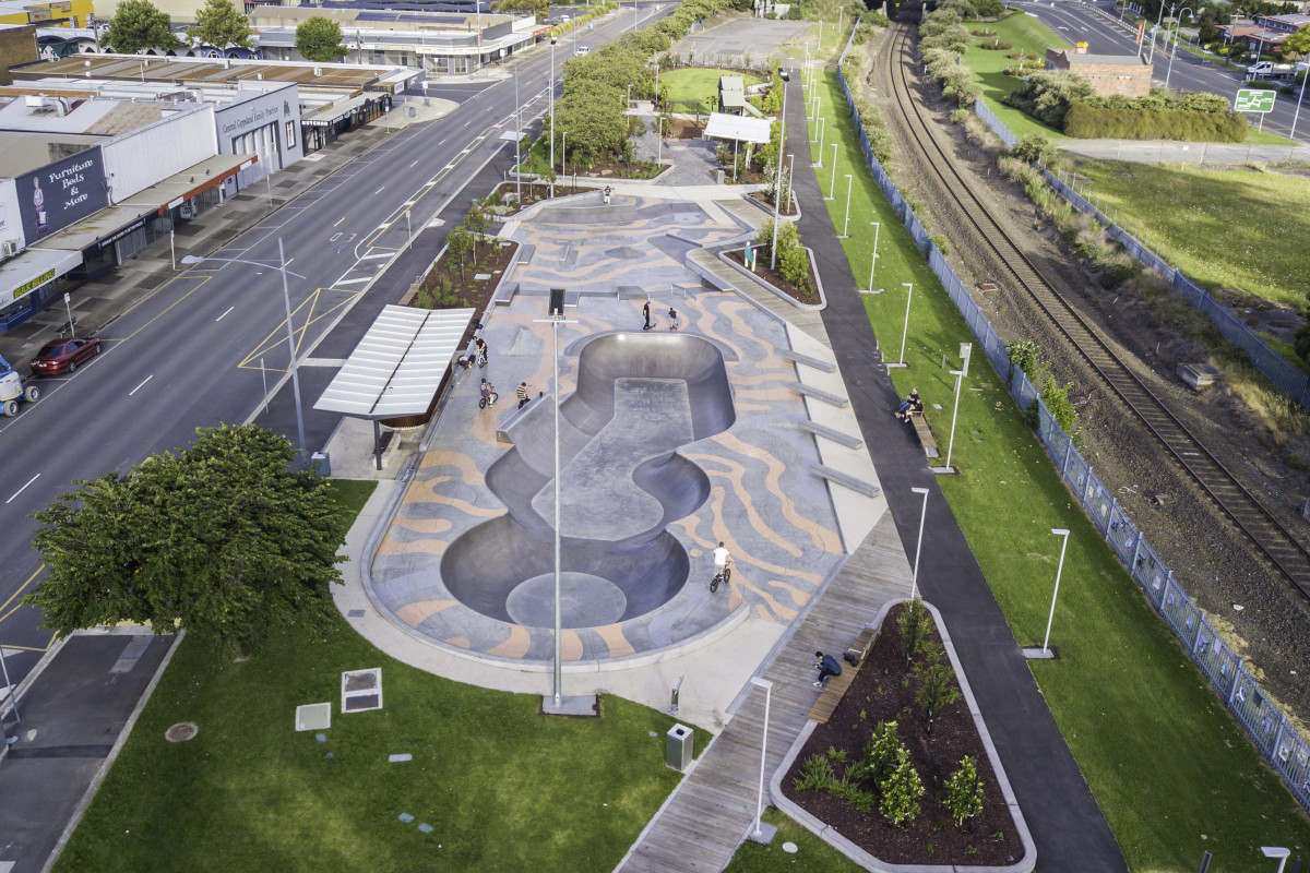 Situated in the LaTrobe Valley the new youth and family precinct is a part of the Moe Revitalisation Project initiated in 2016. The precinct enables a new integrated urban park with all members of community learning, playing and participating. It has become a catalyst project for community pride. The skate park has three clear areas for all levels of skating including the beginner urban skate zone, intermediate skate area and the advanced area including a large 3m deep skating bowl. The urban play area has proven to be a success with new and advanced skaters.