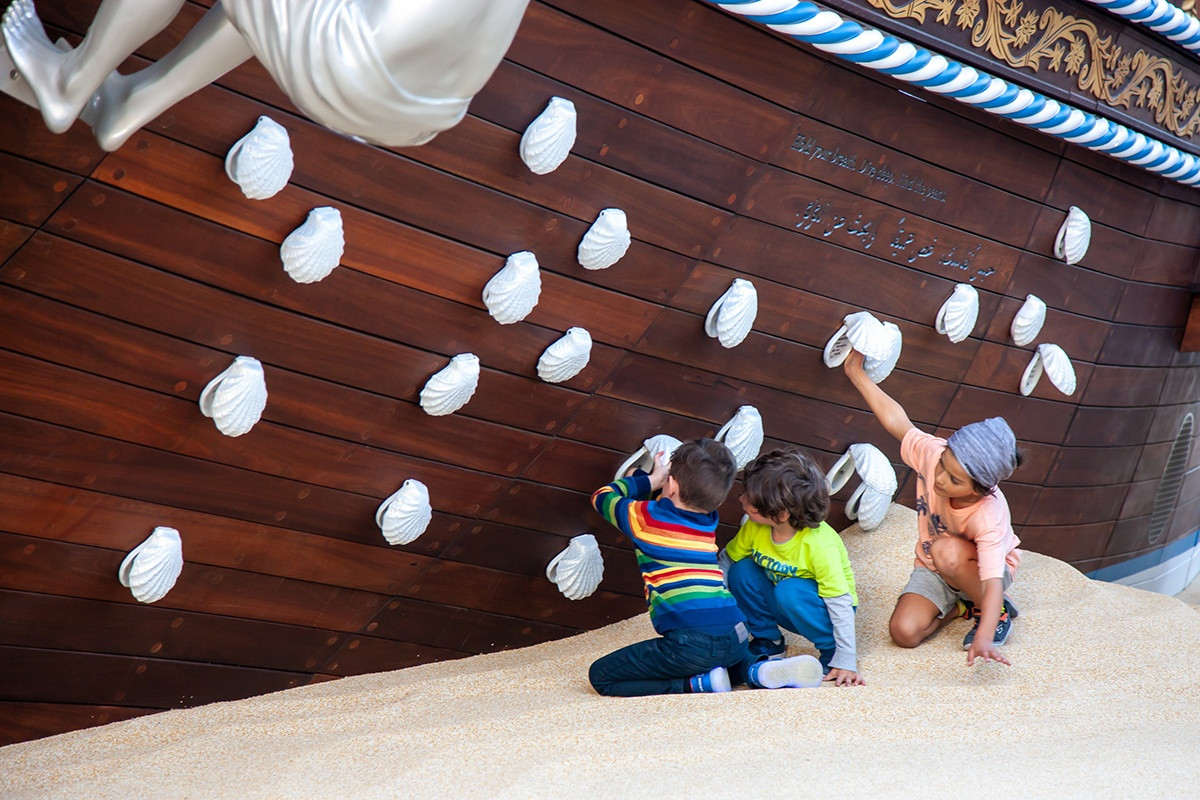 The Adventure Ship and Cave of Wonders are the first in a series of playgrounds within the site of the National Museum of Qatar. The immersive and curated play spaces showcase the stories behind the importance of the sea and Qatari cultural history.