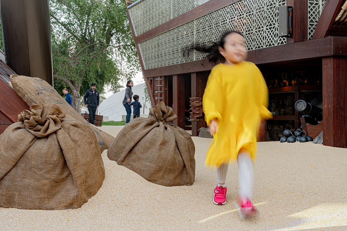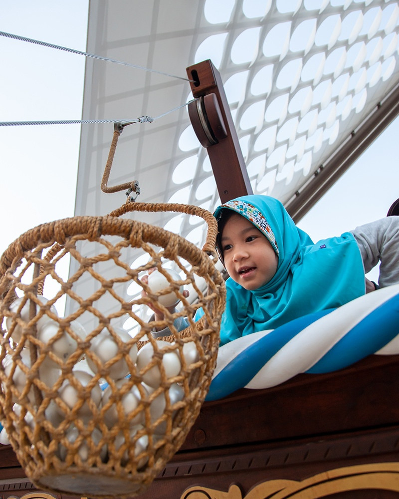 The Adventure Ship playground is laid open on the sand, ready to explore, it reveals the remains of the legendary sailor and trader Erahmah Bin Jaber’s treasure and the ‘shipwreck’ of his most famous ship, the Ghatrousha.