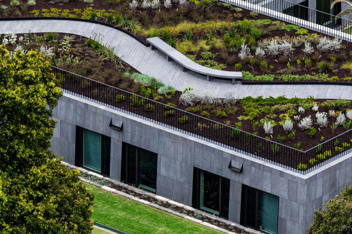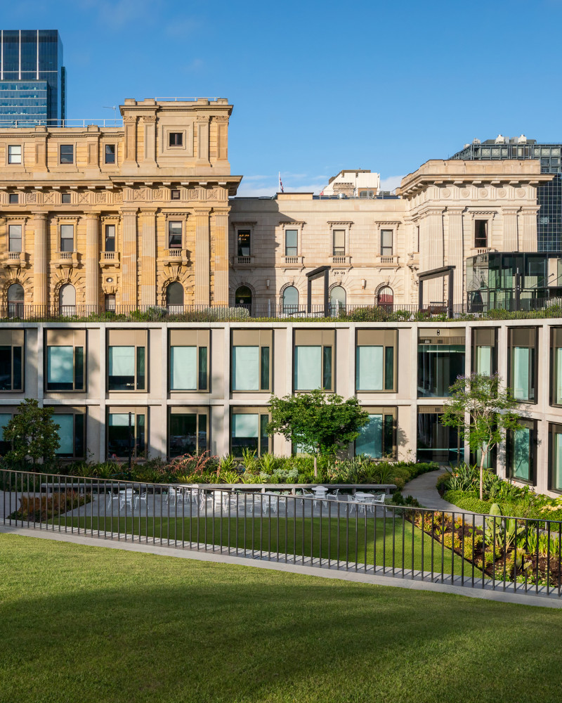The new annex has been conceived as a companion building to Parliament House, set in a garden, where one hundred percent of the footprint has been crowned with two new flourishing gardens (designed by TCL) that merge a beautiful building into its extraordinary landscape setting.