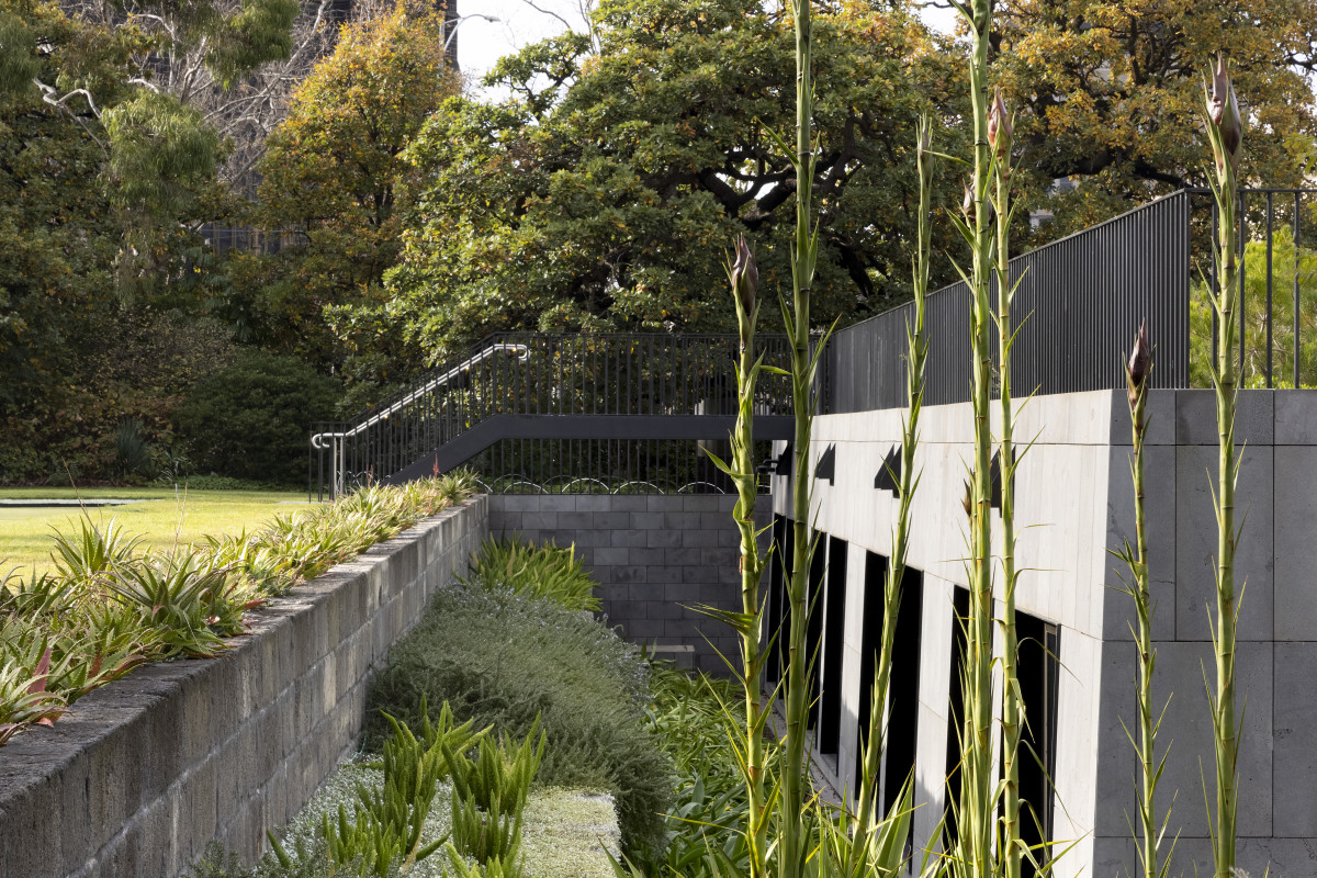 Framing this courtyard is one of Melbourne’s largest rooftop gardens that links with the broader garden setting. This garden, informed by the expertise of renown planting designer Paul Thompson, provide a new layer to the heritage garden context by evoking images of an Australian meadow to emphatically place this contemporary building in its broader loci and illustrate and convey the beauty and importance of indigenous landscapes.