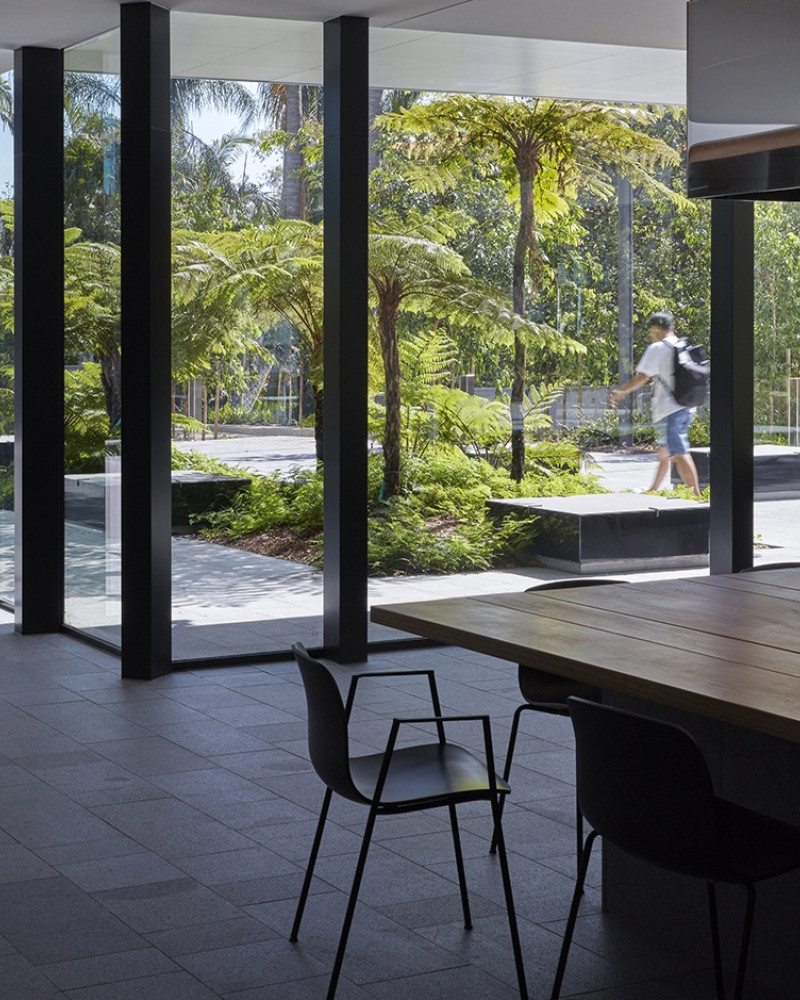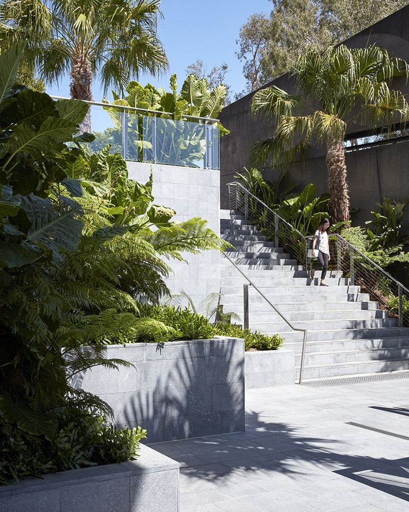 A hallmark of this project is the redemptive, restorative and calming power of landscape experienced by users when surrounded by a living landscape that transitions from the internal atrium to external stairways and the pedestrianised campus spine.