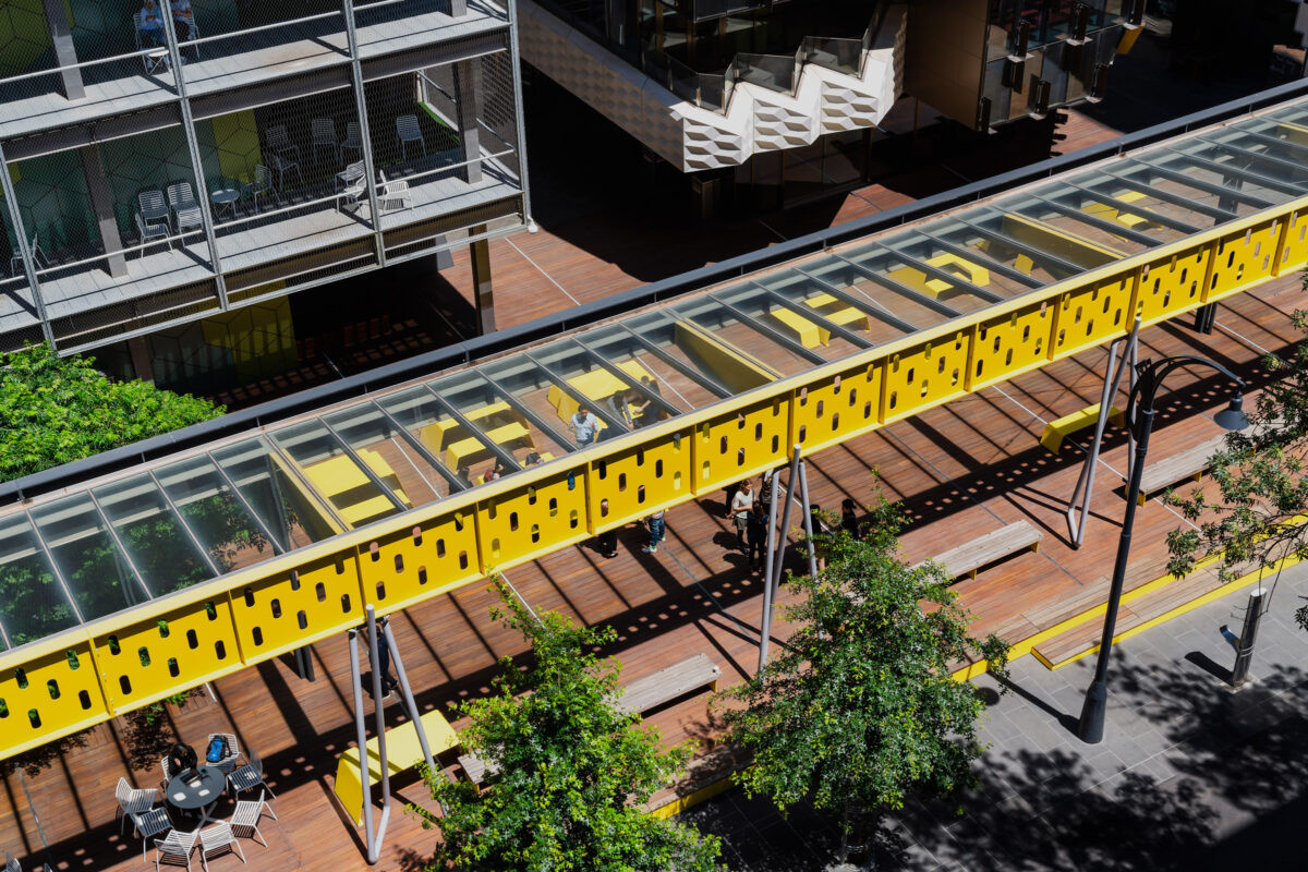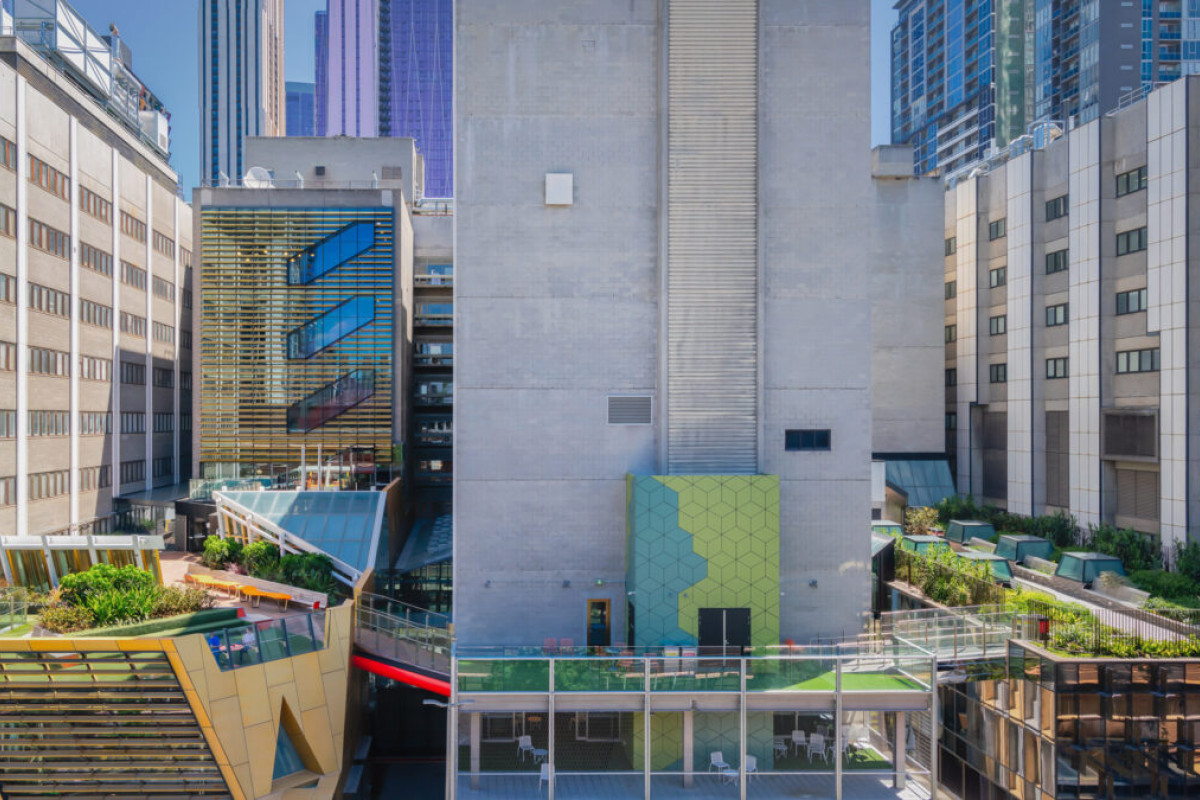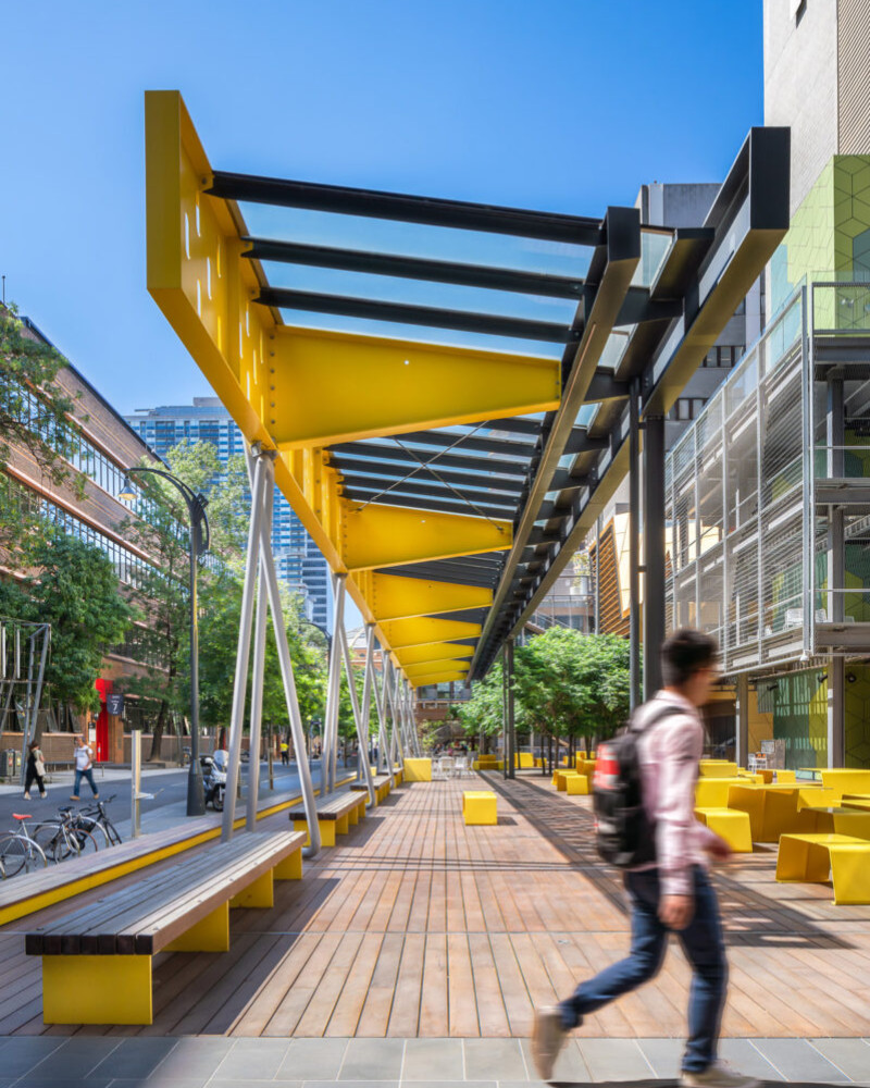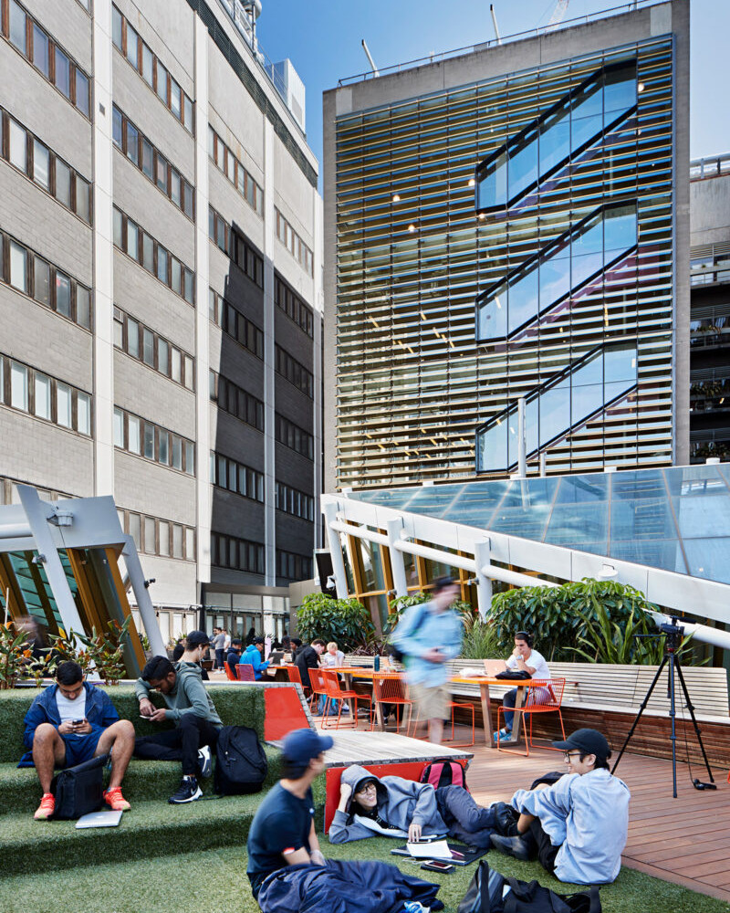RMIT has undertaken a significant redevelopment of its main academic buildings and library on Swanston Street using a consortia of leading architects. The project addresses key issues of the precinct, including reactivating the Swanston Street frontage, providing new links from this spine to Bowen Street, provide new library services and student services and a new food and retail heart.TCL was commissioned as landscape architects and urban designers to design new student spaces along the Bowen Street Terrace. The design looks at consolidating this precinct as the student heart of the campus with a new timber terrace that will play host to events, markets, food and beverage services, as well as informal seating spaces.New roof gardens are a feature of the project that demonstrate best practice in sustainable green roof technology and have links to ongoing research programs. They also provide tranquil spaces to study away from the busy atmosphere of the Swanston Library.