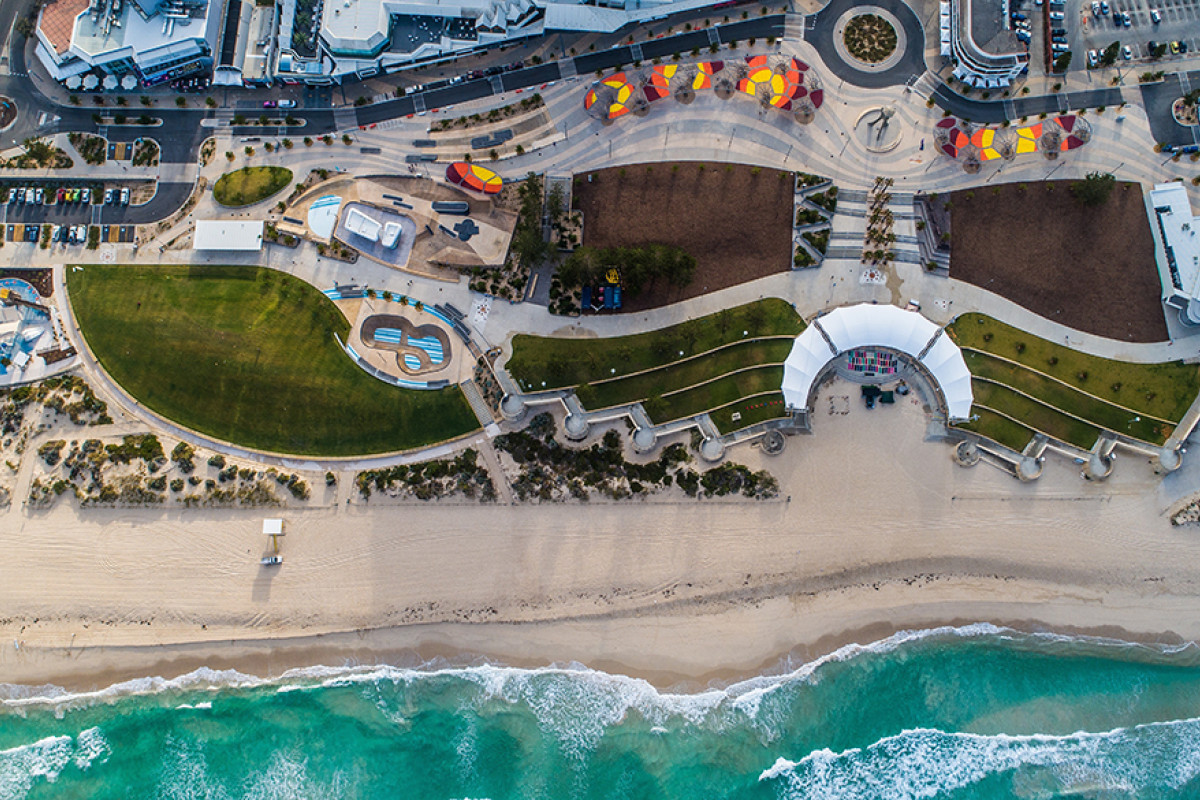 Delivered by the Metropolitan Redevelopment Authority in partnership with the City of Stirling and designed by a TCL and UDLA-led consortium, the project is defined by two main pedestrian promenades that provide clear circulation and frame new amenities and recreational opportunities along the beachfront.