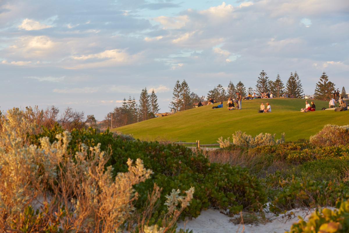 In the north of the site a new 11-metre turfed landform has been created called Sunset Hill – it allows spectacular views over the Indian Ocean, particularly at sunset, as well as up and down the beach.