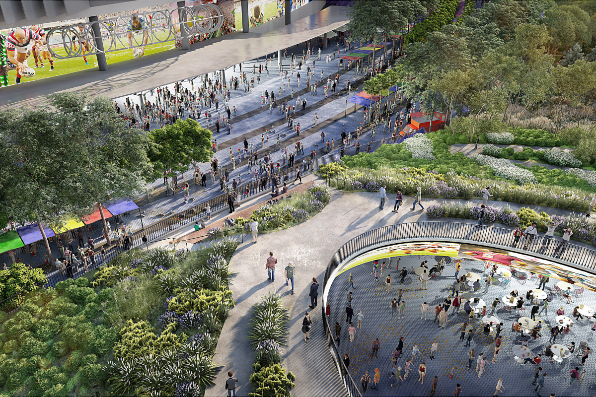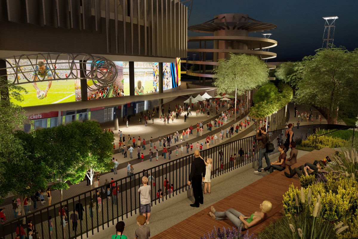 Housing a botanic garden of meadows, wetlands, and woodlands, this destinational design will not only attract new visitors but also engage existing users with the natural environment. The Forest Promenade, which is added to the circumference of the stadium, adds a beautiful colonnade of trees, reinforcing ease of circulation. The transformed promenade links residents, visitors, and fans to the excitement within the Stadium, creating a lasting legacy for this iconic stadium.