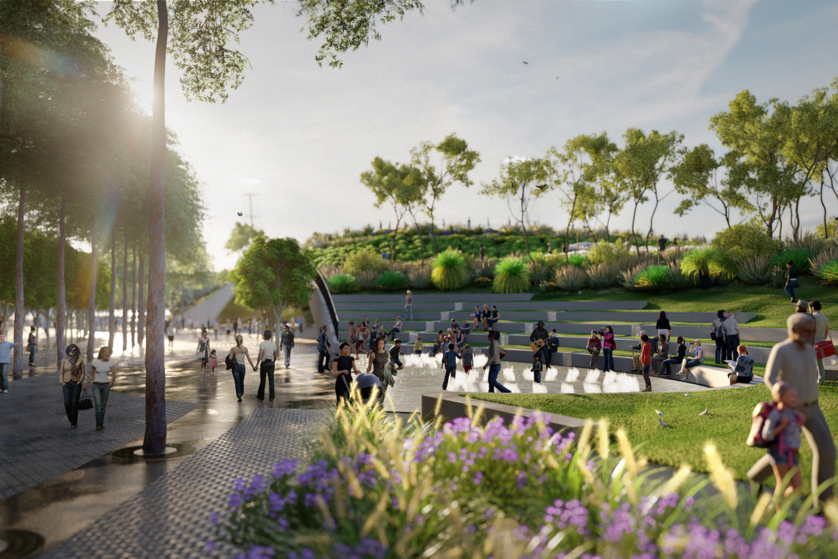 A bold landscape, cloaks the precinct with much-needed biodiversity, a cooling canopy and diverse visitor and community experiences.