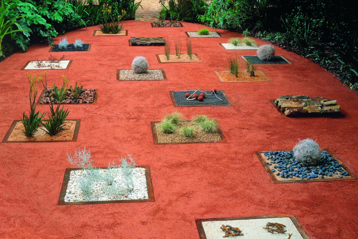 In this garden each room has its own character and mood, expressed in different colours, textures, forms and gestures. The choreography of each expresses different influences and ideas as well as responding to practical factors, such as aspect and existing building types.